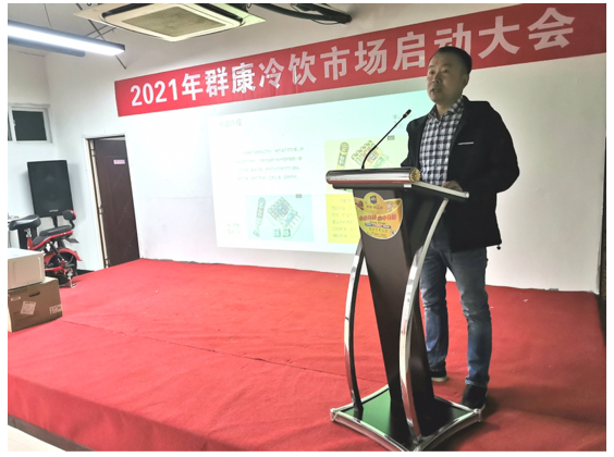 3月26日下午,2021年群康冷飲市場啟動大會在群康集團(tuán)會議室召開。本次會議由冷飲事業(yè)部經(jīng)理宮勛主持,參會的有濟(jì)南群康集團(tuán)董事長于宏昌、辦公室主任張翠蓮、冷飲事業(yè)部的相關(guān)工作人員以及濟(jì)南市區(qū)內(nèi)的經(jīng)銷商代表。